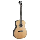 (More customer reviews)This is a 000 "Martin style," solid wood acoustic guitar. The 000 body here looks like an OM - a feature of early guitars in this style was a longer scale (and was called an OM) - 25 inches plus, the short scale came later (24.9 and less) and was done with the intention of making the guitar easier to play due to the lack of choice when it came to string gauges (heavy or medium or nothing). This guitar is well constructed: hand carved neck, with an 1 3/4 inch nut width, bone nut and saddle, ebony fretboard and bridge, a real rosewood veneer over the peghead, and matched mahogany back and sides and a matched sitka spruce top...all very clean, it appears to be AA in wood grade and finished in an aged light gloss finish. The neck feels more like a modified V than a "C" profile. Body and neck joint feature grained ivoroid binding and a peek inside reveals scalloped bracing. The top presents with herringbone and a well done torch inlay on the peghead. This is a well designed, and well made guitar. The tone is very traditional - you get the presence and warm mid range of mahogany. This particular guitar has a bit more bass than I was expecting, but I find that to be a bonus. Otherwise, it is very balanced. To other consumers, I find this guitar to be a significant value...the quality of wood, inlays and workmanship come together to make a great guitar - perfect for fingerstyle blues, traditional country and ragtime. I doubt that this level of quality will be this affordable for much longer. If you cannot afford a Martin in this style, you will not be underserved by this guitar. It is highly recommended.